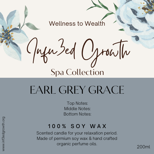 Immerse yourself in the serene elegance of Infu3ed Growth’s Spa Collection – Earl Grey Grace Scented Candle.